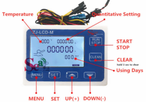 2- کنترل کننده و نمایشگر دبی آب جهت مونیتورینگ دبی عبوری و همینطور مقدار لیتر در لحظه و لیتر کل عبوری که قابلیت تنظیم برای عبور مقدار معینی از سیال را نیز دارد.