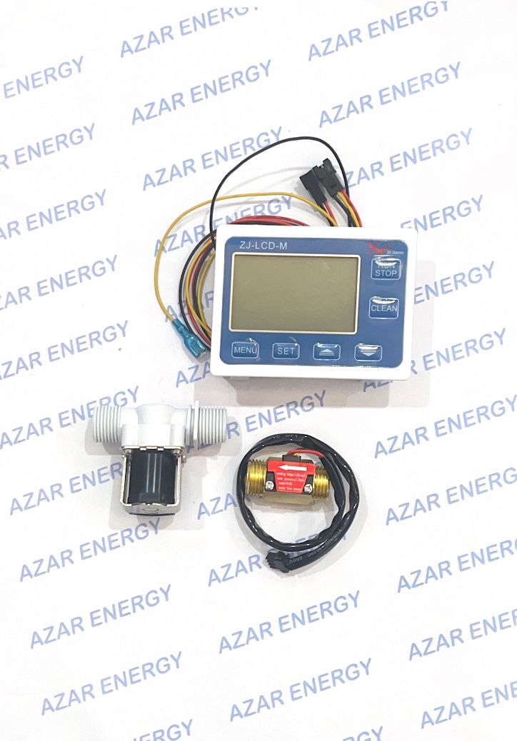 2- کنترل کننده و نمایشگر دبی آب جهت مونیتورینگ دبی عبوری و همینطور مقدار لیتر در لحظه و لیتر کل عبوری که قابلیت تنظیم برای عبور مقدار معینی از سیال را نیز دارد.